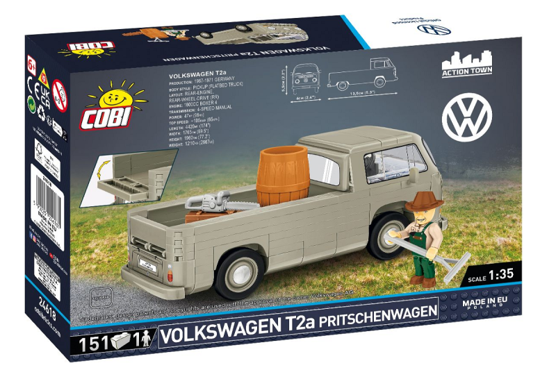 Der COBI Volkswagen T2a Pritschenwagen ist ein perfektes Souvenir für jeden Autofan. Obwohl er nicht so erkennbar war wie die Pkw-Version, blieb er eines der Symbole der Automobilrevolution der 1960er und 1970er Jahre.