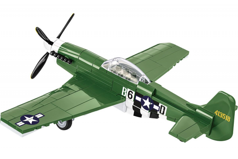 Die wahre Legende der Lüfte, das amerikanische Jagdflugzeug Mustang P-51D, wurde von uns aus 150 COBI-Bausteinen nachgebildet. Wir haben uns für einen völlig neuen Maßstab von 1:48 für Kampfflugzeuge aus dem Zweiten Weltkrieg entschieden. Jetzt können Sie ganz einfach einen Schutz für Ihre riesigen COBI-Bomber bauen! Das Set enthält ausschließlich hochwertige Drucke mit Bezug zur historischen Bemalung des Flugzeugs. Der lizenzierte Mustang aus COBI-Klemmbausteinen ist ein tolles Kompaktmodell, das unter Luftfahrt- und Militärtechnik-Enthusiasten so manche Sammlung eröffnen wird! Es ist auch ein perfektes Modell für einen guten Start in Ihr Abenteuer mit polnischen COBI-Bausteinen!